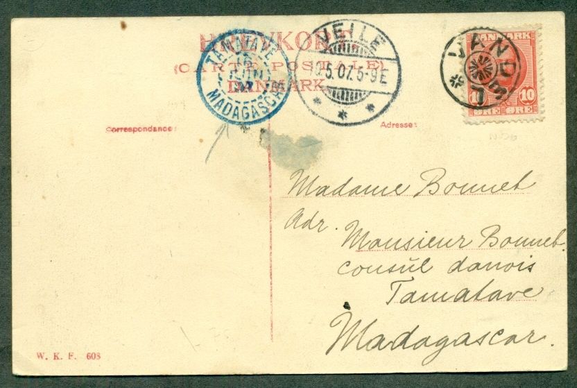 1907, 10ore tied by Star Vandel on card to MADAGASCAR, scarce destination, $210.00 |