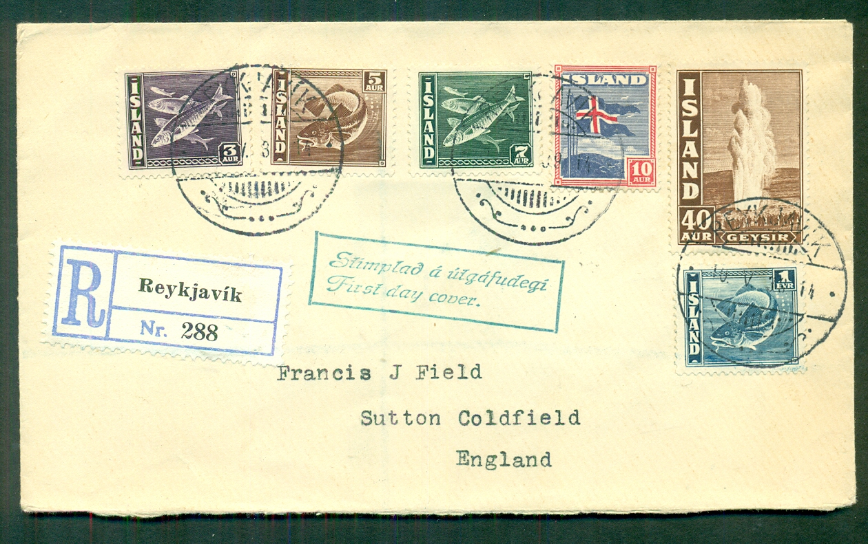 tied Reykjavik on registered cover to England, Edinburgh arrival