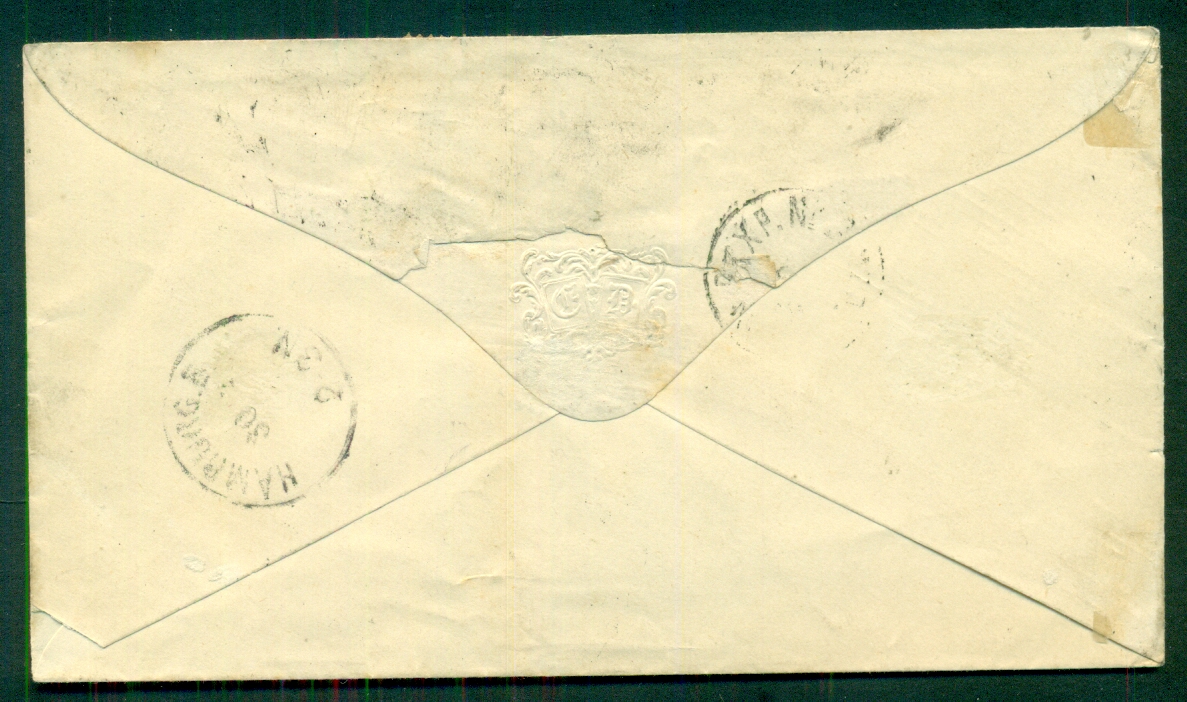 | 410P | 1859, 108ore rated cover to England via Germany, 24ore x2 + 30ore x2 (Scott 10,11) tied Stockholm + various transits, scarce, Facit $1,210.00, $575.00 | ||