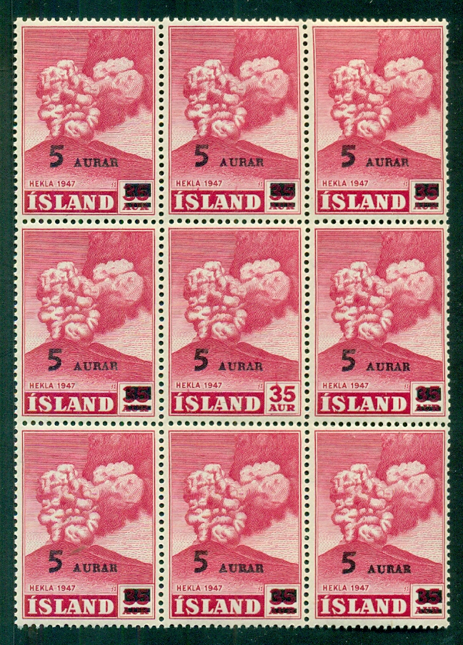 283 (326v1) 5a on 35a Hekla Complete sheet incl. 3BAR variety, NH, VF, $29.00 |