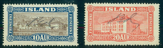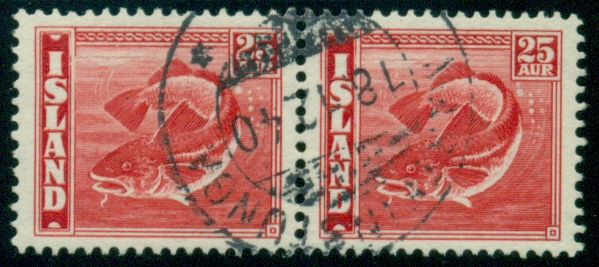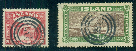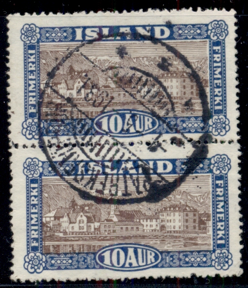 316RO | Iceland Bridge Cancel PATREKSFJORDUR (B1b) 1931 full strike on 10aur pair, $15.00 | |