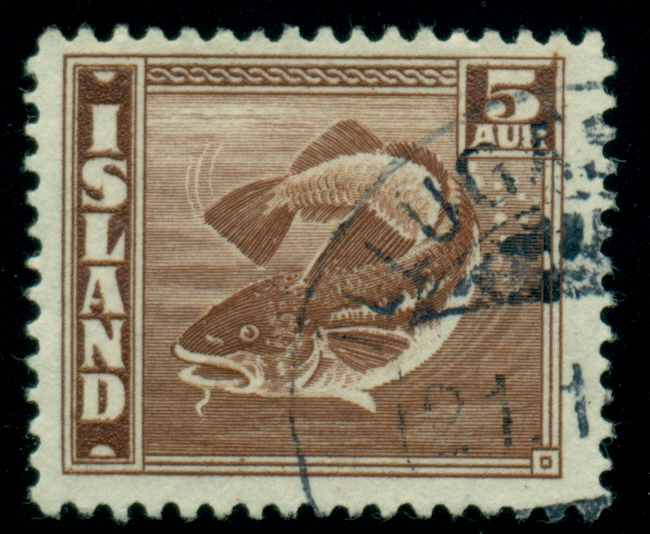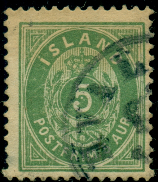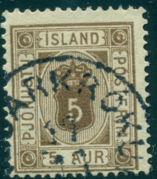 316RD | Iceland Bridge Type Cancel (B2a) ILLUGAS(TADIR) on 5aur Fish, scarcer, $24.00 | |