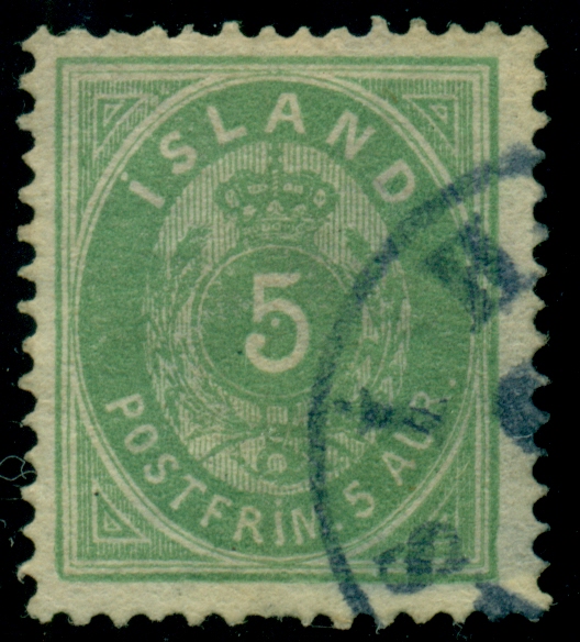 316SK | 24, 5aur green, used w/FRA FAROERNE Danish arrival cancel, quite unusual on Icelandic stamp, VF, $95.00 | |