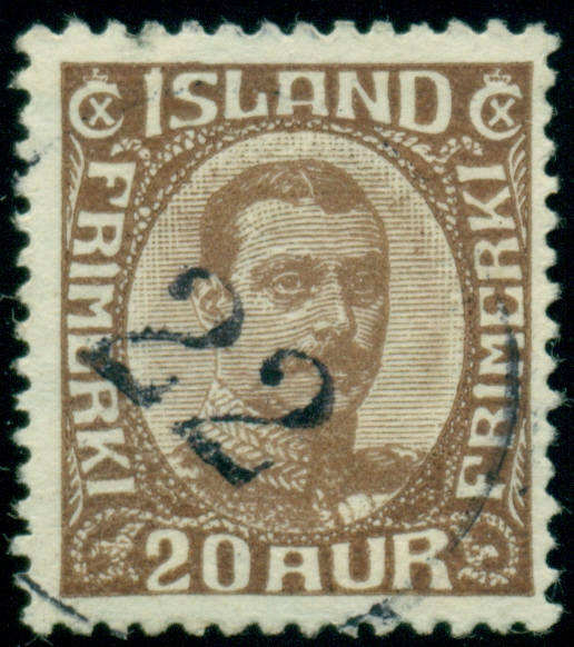 316QFA | Iceland Numeral Cancel #22 on 20aur Chr. X, VF, $90.00 | |