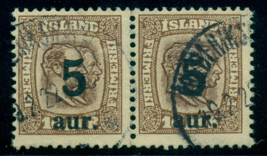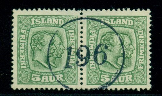 316QPT | Iceland Numeral Cancel #196 on 5aur Two Kings pair, VF, $78.00 | |