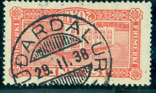 316RAF | Iceland Bridge Cancel BUDARDALUR, 1938 on 20aur, VF, $10.00 | |