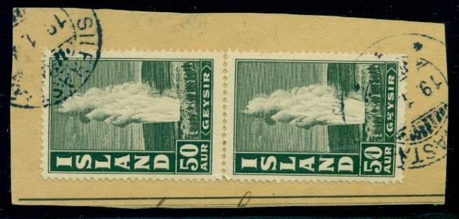 316RSA | Iceland Bridge Cancel SILFRASTADIR (B2a) on 50aur Geysir pair on piece, VF, $14.00 | |