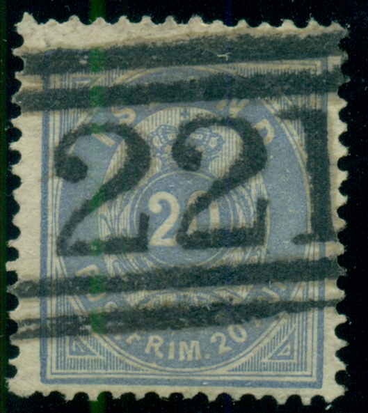316SHH | Numeral 221 (British cancel for Leith Scotland) on 20aur ultra (Scott 17a-$375.00) applied on arrival of ship mail, VF, $250.00 | |