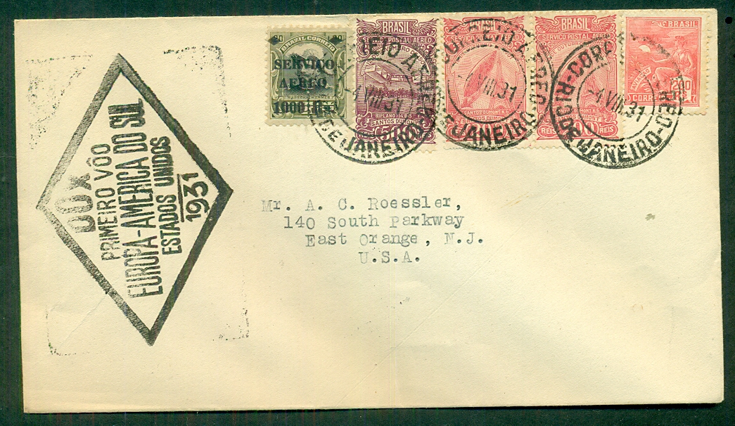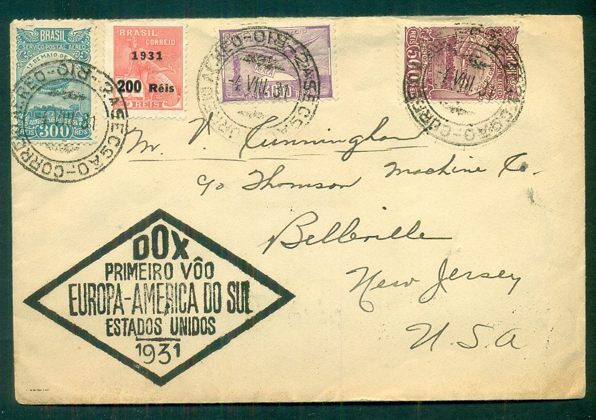 BRAZIL, 1931, DOX First flight cover to U.S., nice franking and VF, $120.00 |