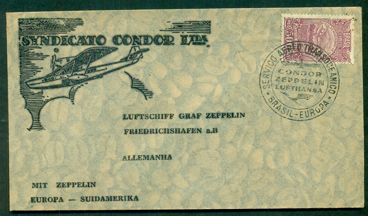 BRAZIL, 1936, Condor Zeppelin Flight to Germany with illustrated cover, VF, $85.00 |