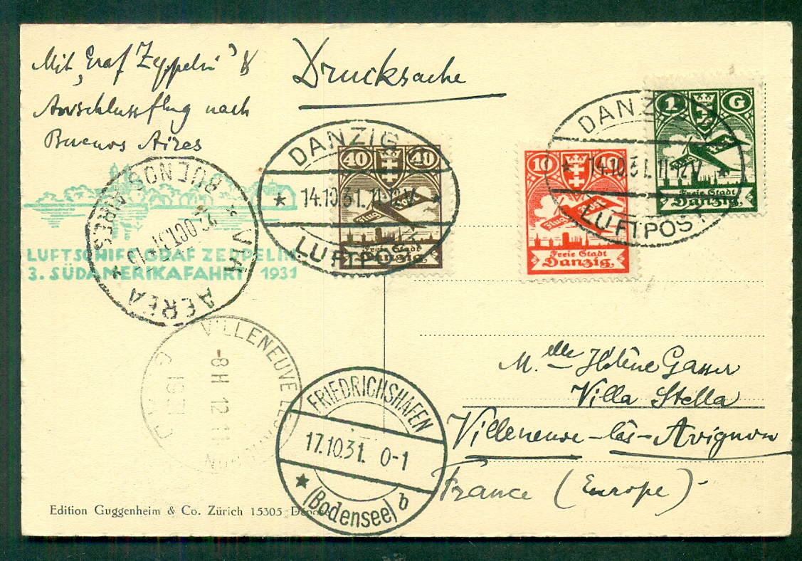 DANZIG, 1931, Zeppelin Flight card to Germany, proper cancels, pretty and VF, $115.00 |