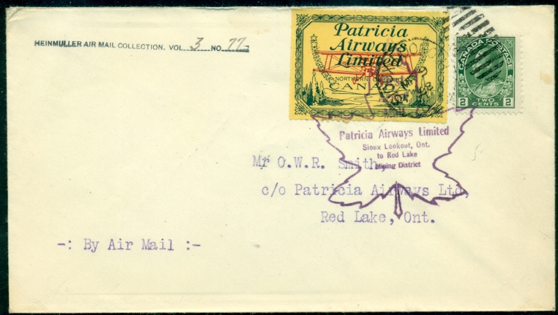 (10˘) Patricia Airways Ltd tied flight cover Red Lake to Sioux Lookout,