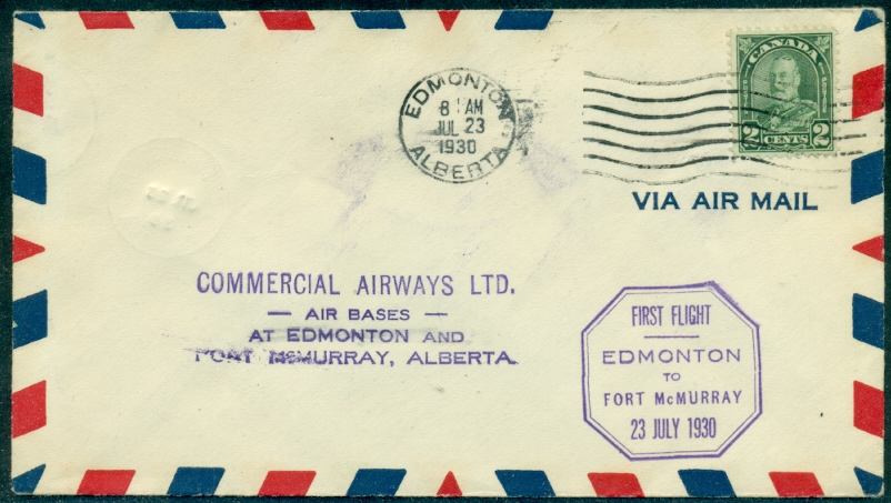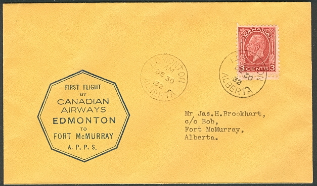 Airmail, Unitrade CL51, 1932 First flight Edmonton to Ft. McMurray