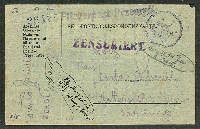 “Fliegerpost Przemysl”, undated on scarcer blue green card w/all proper