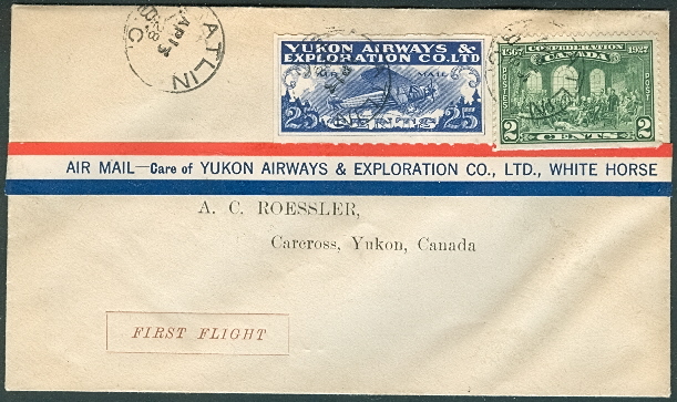 Airmail, Unitrade CL42, 1928 First flight Atlinto Careross w/25˘ Yukon