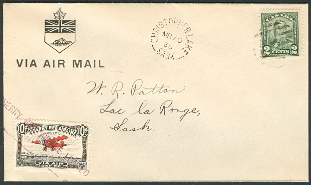 Airmail, Unitrade CL46, 1930 First Flight Christopher Lake to Lac La