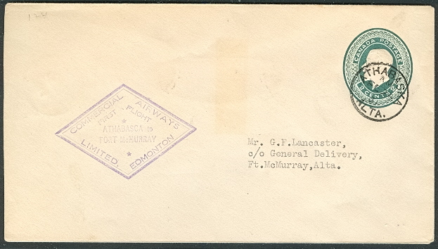 Airmail, Unitrade CL48, 1931 First flight Athabaska to Ft. McMurray
