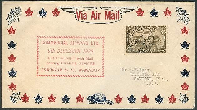 Airmail, Unitrade CL50, 1930 First flight Edmonton to Sanford via Ft.