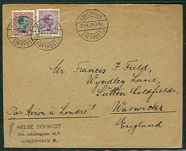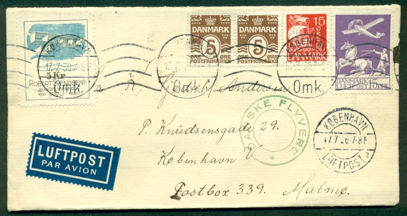 green Danske Flyvere handstamp, very nice flown cover, VF, $140.00 |