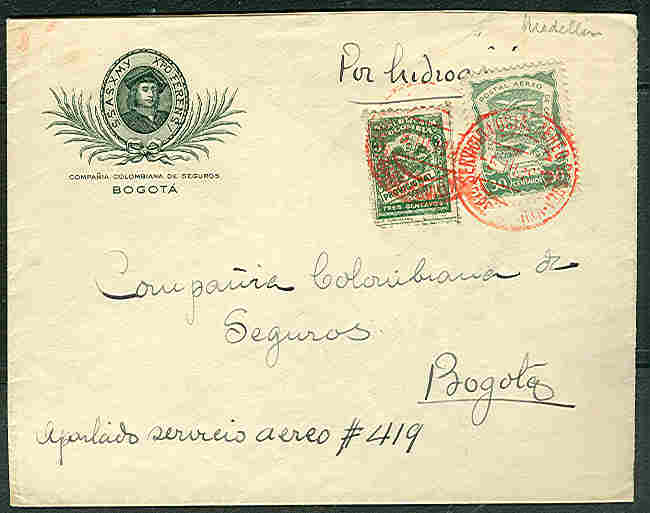 pretty advertising cover, franked w/3c +30c SCADTA stamp, VF, $50.00