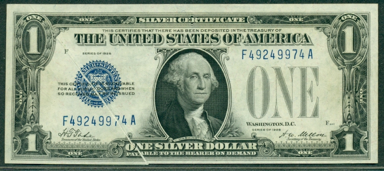 “Funny Back”, PAPER FOLD ERROR, 1928, Fr. #1600, Choice UNC, $475.00 |