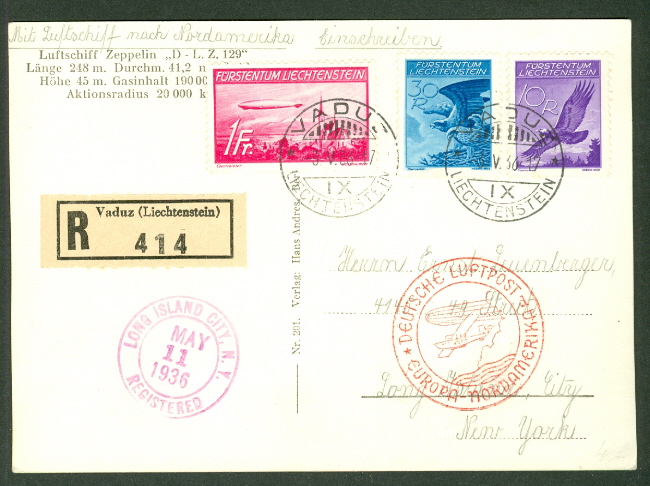 LIECHTENSTEIN, 1936, Hindenburg Olympic Flight cover, VF, $180.00 |