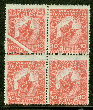 1916, B53 Soldier, mint block of 4 with bold PAPER FOLD on one stamp, $50.00 |
