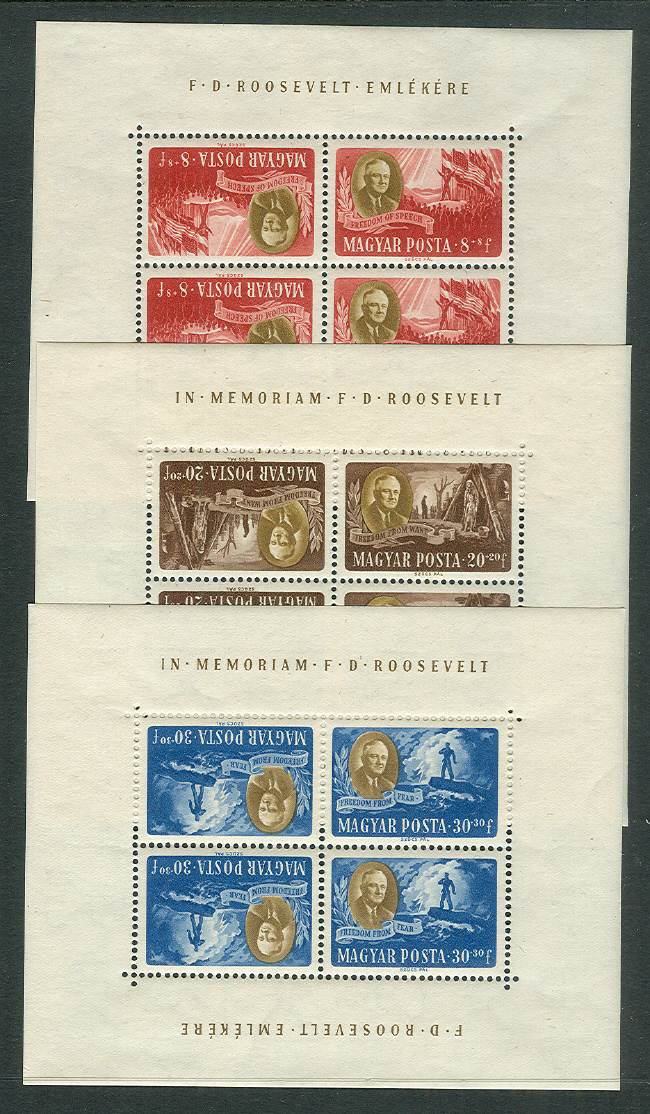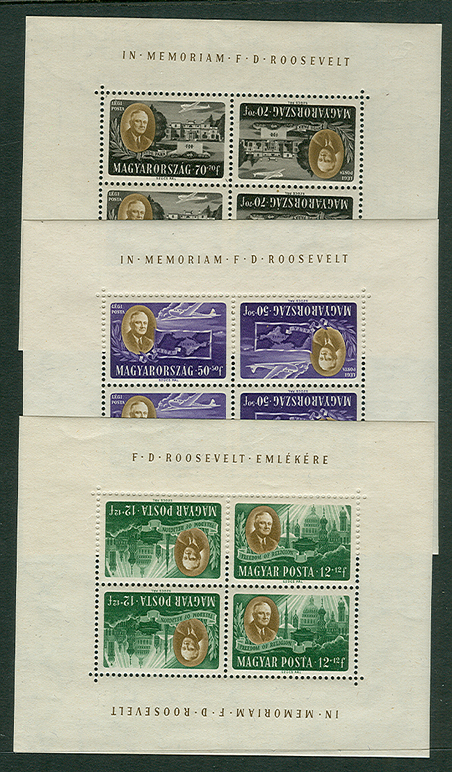 1947, B198A-D, CB1-CB1C, Roosevelt souvenir sheets (2), og, NH, VF, $110.00 |