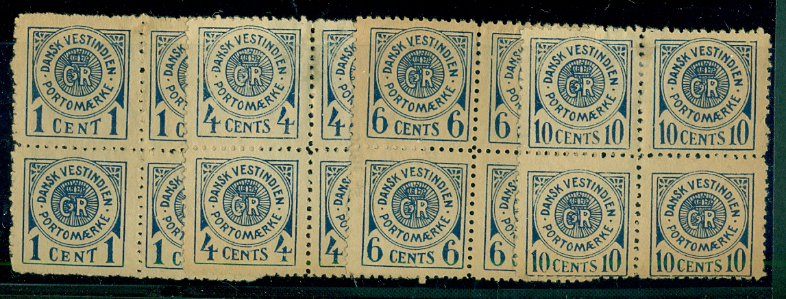 Postage Due set complete in IMPERF BLOCKS OF 4, 5 bit with 2 NH others 3 NH