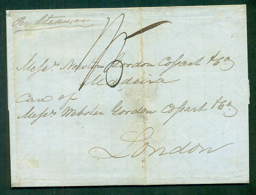 Stampless Folded Letter, St. Thomas to London, Forwarding Agent cachet