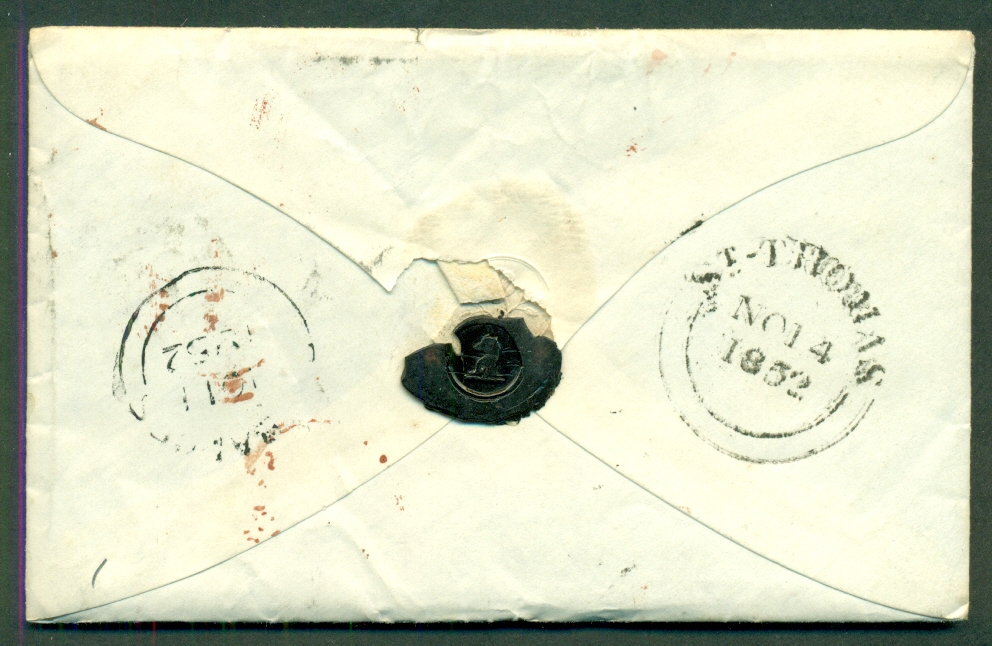 1849, Stampless to London, St. Thomas double semi-circle cancel and red arrival, VF, $120.00 |