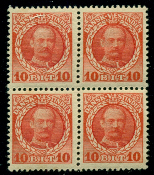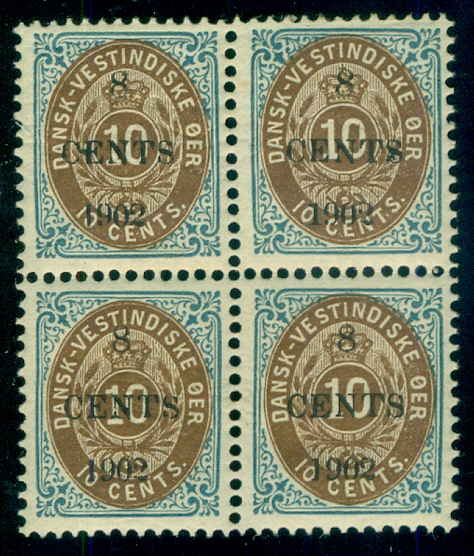 25, 8¢ on 10¢, Block of 4 showing E in VEST variety (pos. 63), og, NH, VF, Facit $240.00, $95.00 |