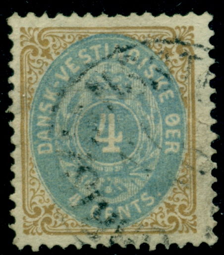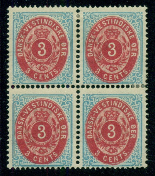 Strip of 4 tied Frederiksted on small piece, VF, Facit for singles $285.00,