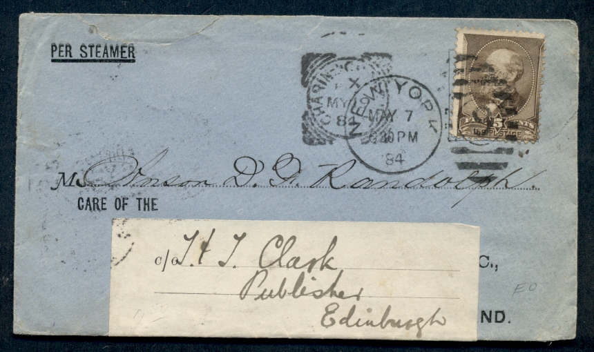 1884, 5¢ brown tied on cover to Scotland Per Steamer, VF, $30.00 |