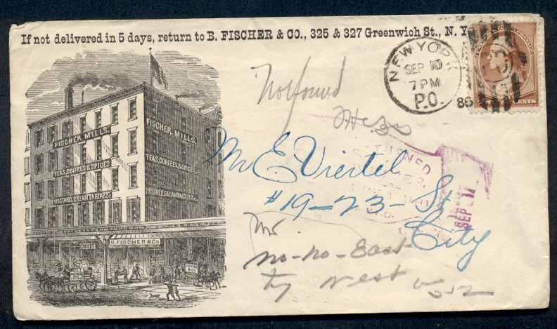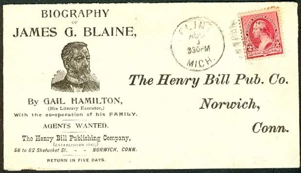 1881, Palmer Genealogical Record advertising, 1¢ tied Jamaica N.Y., VF, $25.00 |