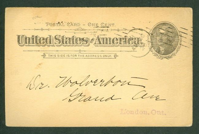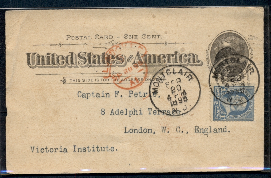 1895, 1¢ card + 1¢ (#246) tied Montclair NJ to London, pretty and VF, $40.00 |