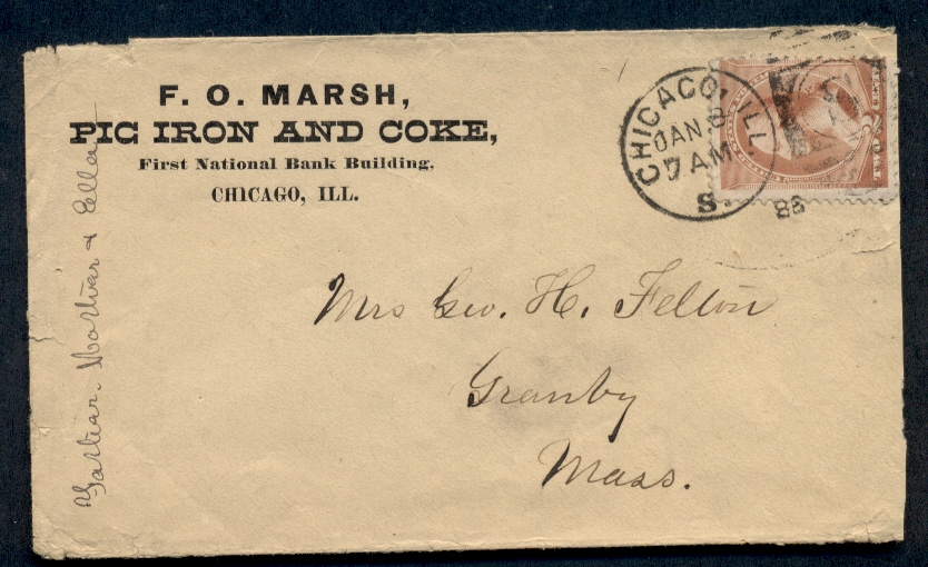 1885, 1¢ tied Housatonic Mass. (Berkshire) with letter enclosed, slightly trimmed at right, $22.00 |