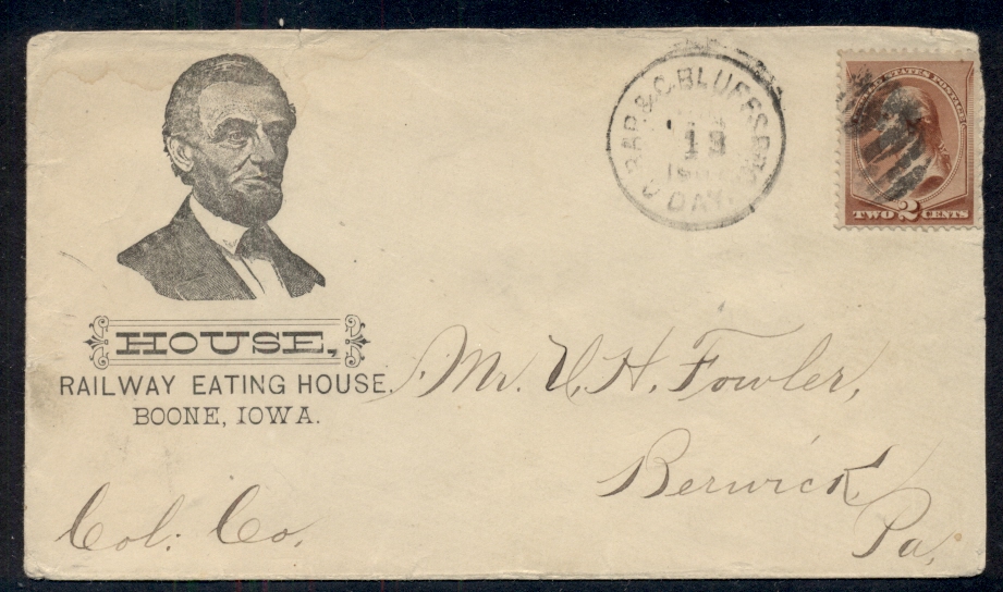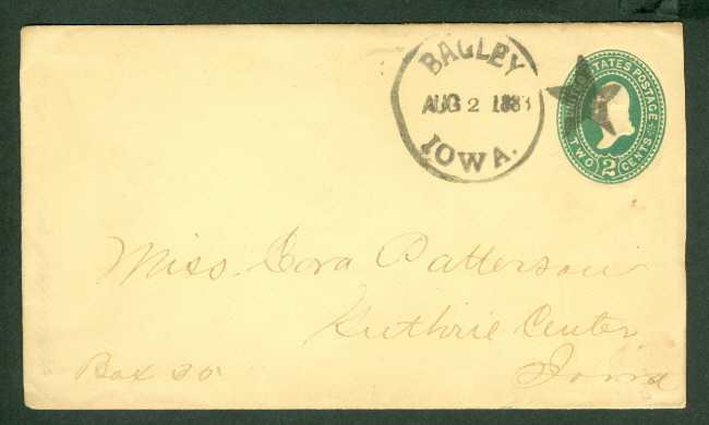 1882, Clarion, Wright Co., Iowa plus fancy cancel on 1¢ postal card, spindle holes, VF, $18.00 |