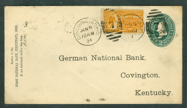 Registered 2¢ entire w/8¢ Bureau tied, VF, $30.00 |