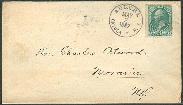 1882, 3¢ tied by Bath NY (Steuben County) and STAR cancel, VF, $30.00 |