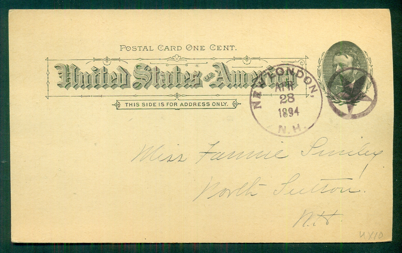 1899, Nat’l Export Exposition cancel (Barry Ty.X) on 1¢ card, scarce and VF, $95.00 |