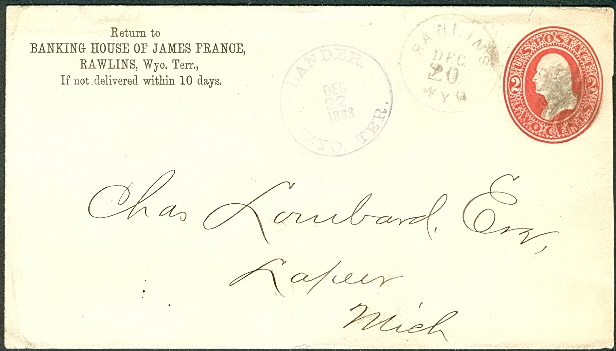WYOMING TERRITORY cover to Mich. (bkstp) tied Rawlings Wyo plus purple