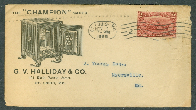 of St. Louis MO illustrated advertising on cover w/2¢ (#286) Trans Miss,