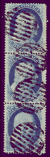 3¢ rose, Three Huge Straddle Margin singles, used, quite unique, $95.00 |
