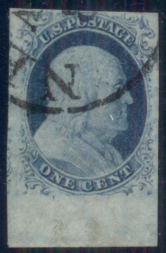 1¢ blue, type IV/Pos. 8R1L, used, VF, Plating Archive certificate, Scott $700.00, $340.00 |