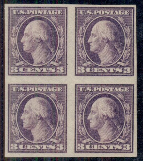 3˘ violet, Imperf Block of 4, og, 2NH/2H,
