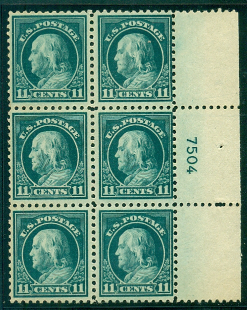 Plate No. Block of 6 w/scarce #11460 (see Durland), og, NH, VF, $225.00 |