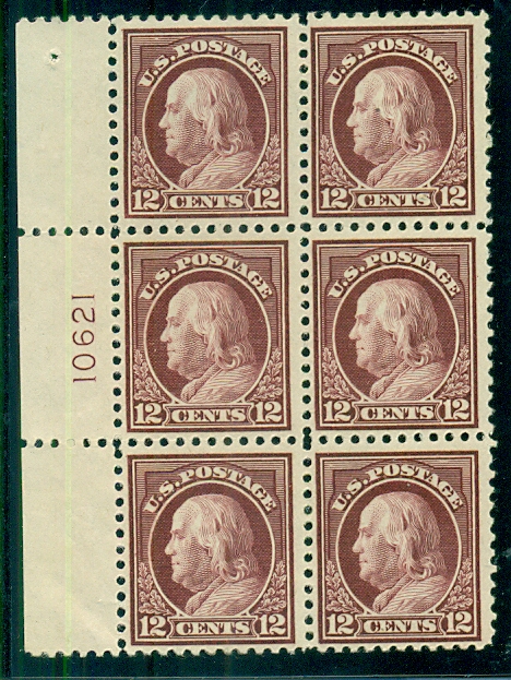 12¢ claret brown, Plate No. Block of 6, og, LH, VF, Scott $150.60, $70.00 |