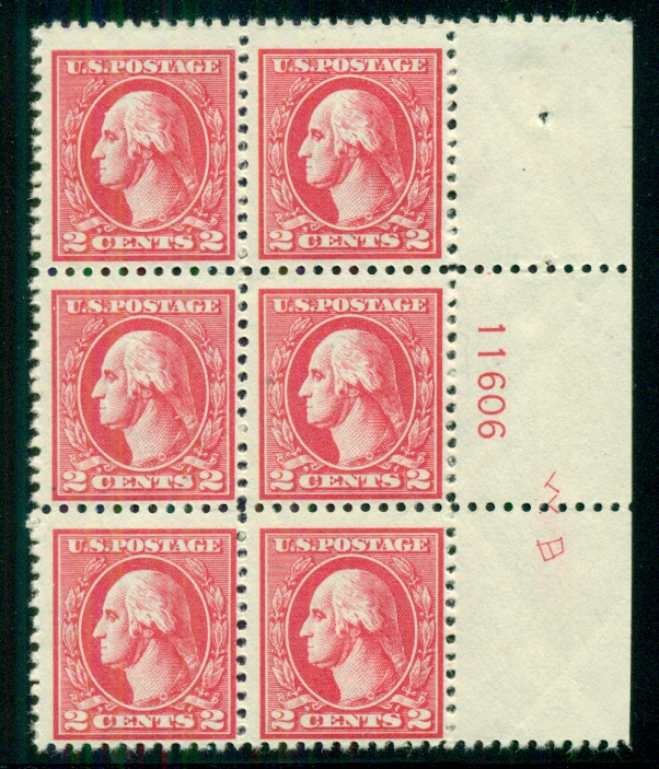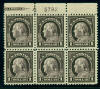 2¢ Lincoln, Plate No. Block of 6 w/imprint & small solid star, og, NH, XF/Superb, $350.00 |