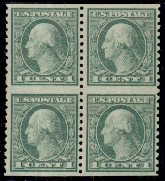 1¢ green, Block of 4, imperf horizontally, og, NH, VF, Miller certificate, Scott $250.00+, $150.00 |